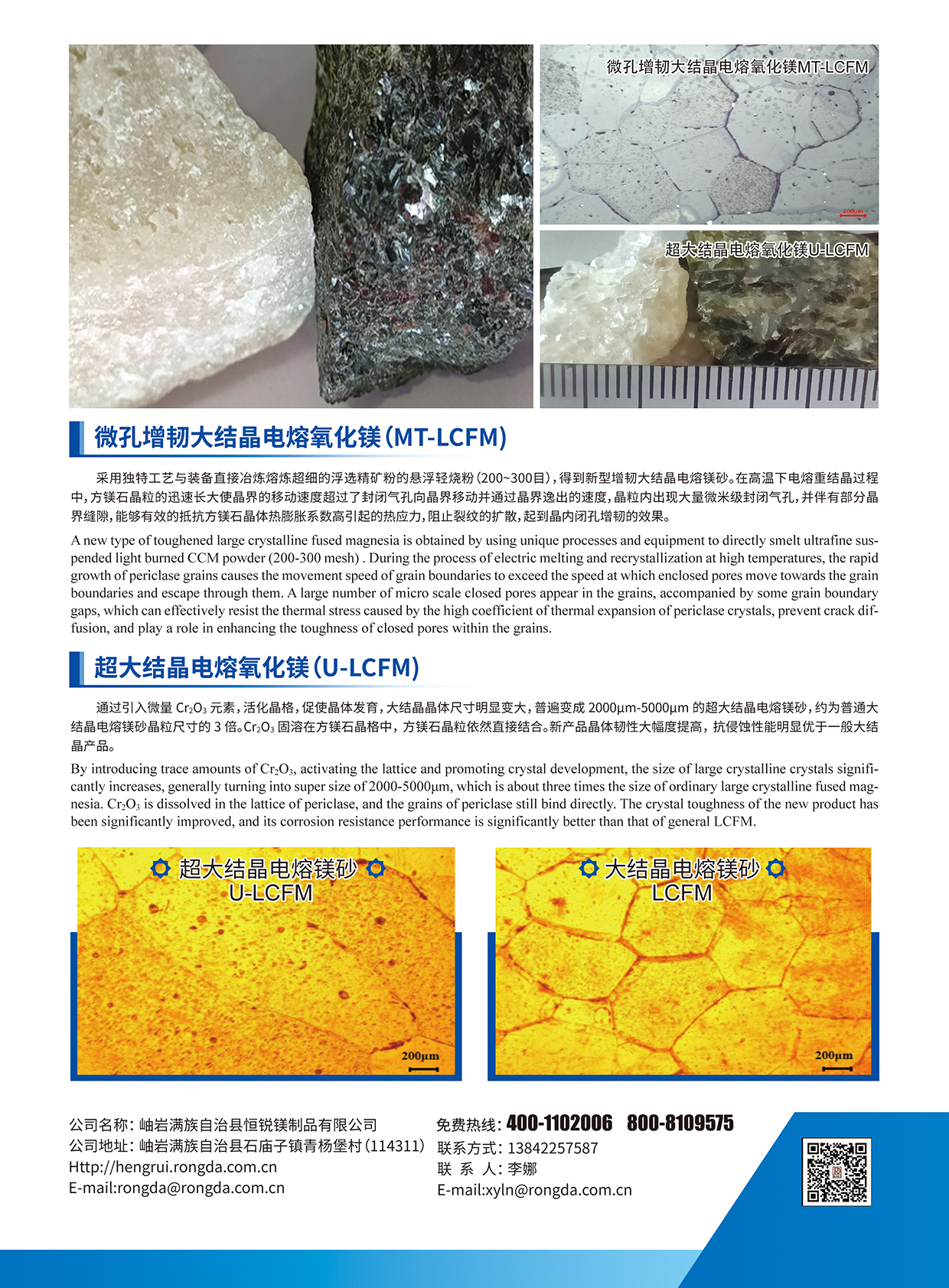 Hengrui Magnesia (Beijing Allied Rongda Group)is located in Xiuyan Manchu Autonomous County, Anshan City, Liaoning Province. There are four sets of unique arc furnaces , which can produce 15000 tons of microporous toughened large crystalline and ultra large crystalline fused magnesia annually. (MT-LCFM &UL-CFM)